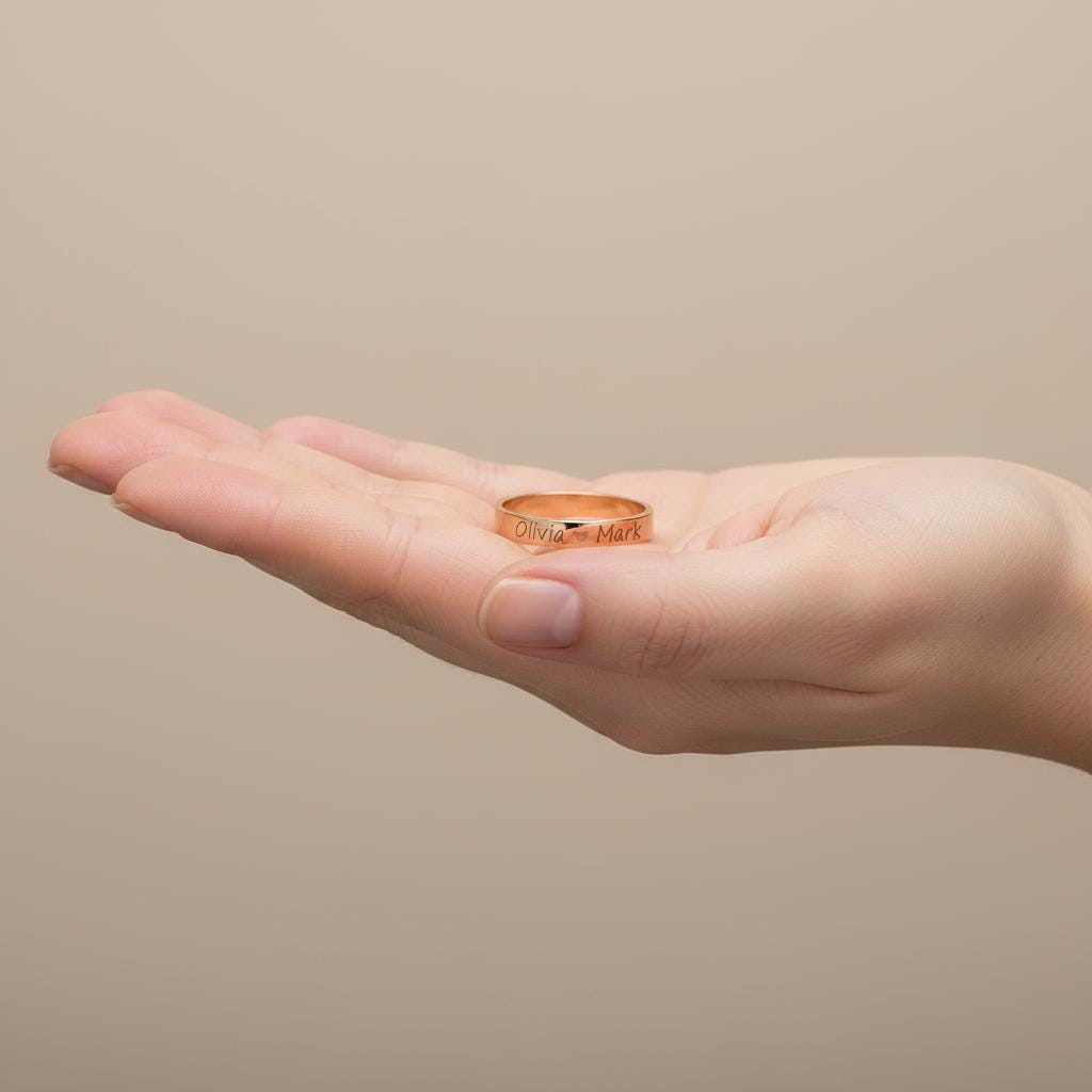 WHAT/WHY: Your unique love story, beautifully engraved. This minimalist ring can feature two custom names (e.g., "Jack ❤️ Gracie") with a delicate heart symbol between them, just like in our reference image. It's a subtle yet powerful reminder of cherished connections, designed to be worn close to you every day.