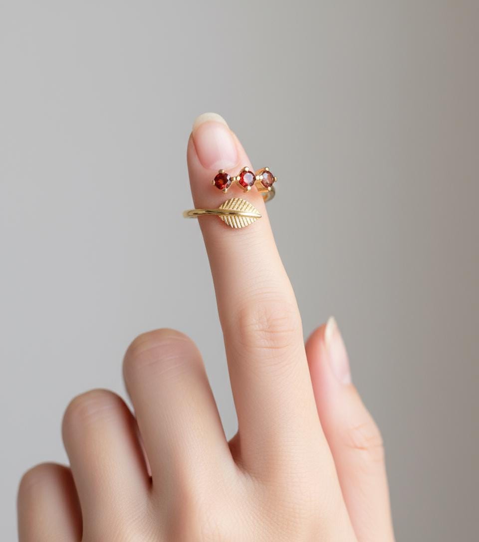Olive Branch Three Stone Ring, Adjustable 925 Sterling Silver Gold Plated, Minimalist Peace Symbol Gift for Her, Christmas Gift